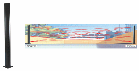 Инфракрасные активные системы (ИКАС) - организовываются на базе активных ИК извещателей, которые сформировывают многолучевой барьер в зоне прямой взаимной видимости передатчика и приёмника. Схематично структура такой преграды представляется следующим образом :